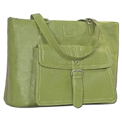 Suspended, padded central laptop compartment, Lots of room inside to hold accessories, paperwork, and more, Large outside pocket holds ID, pens, cell phone and business cards, Two additional zippered pockets inside, Velcro strap for securing laptop in place, Strap and clip for keys, Metal feet on bottom, Strap length is 24.5" from top of bag. A premium Italian leather laptop tote with elegant handbag styling and contrast stitching. The suspended central laptop compartment protects your computer with ample room left for your peripherals and necessities. The large outside pocket holds cell phone, business cards, pens, ipod, pda and more.